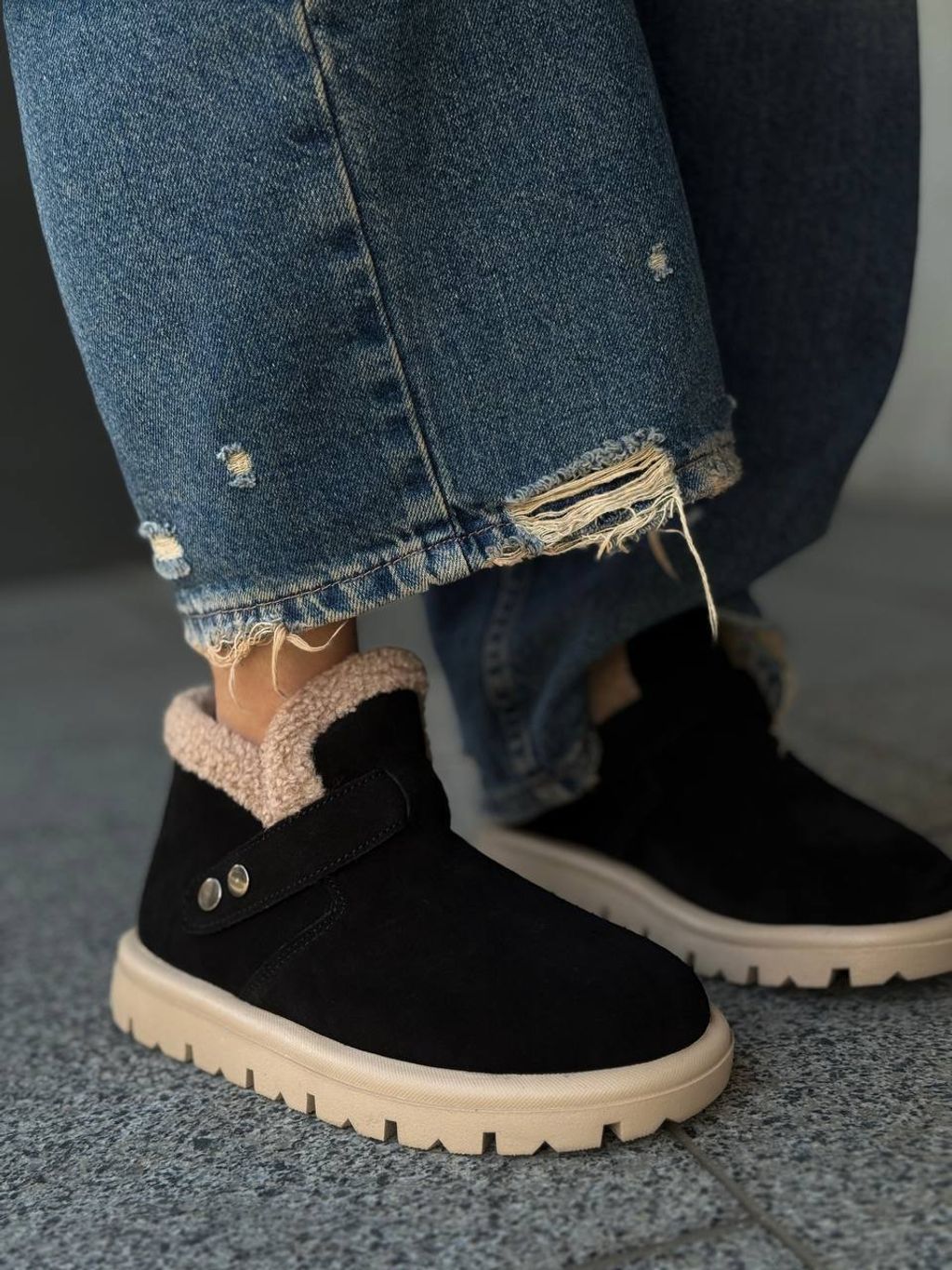 Виконані з натуральних матеріалів, що забезпечують комфорт і зносостійкість. Усередині — м’яке еко-хутро, яке добре зберігає тепло та приємне на дотик. Зручна підошва гарантує стабільність і комфорт під час щоденного носіння